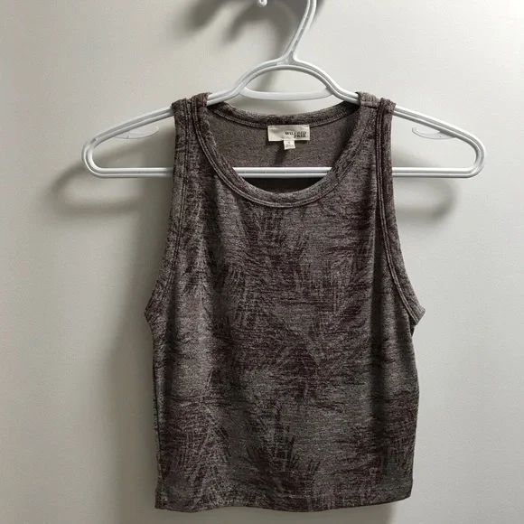 NWOT. 2011-2013. Heathered purple with palm leaf motif. Size XS, fits small. Cropped.