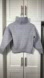 The sweater features a chunky rib knit with vertical ribs, a mock turtleneck, and a cropped fit.