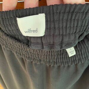 Wide-leg pants with elastic waist band. See photo for material.