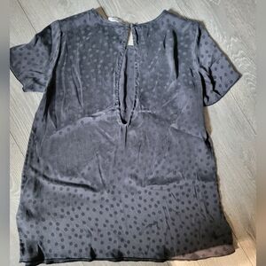 Wilfred (Aritzia) Silk 'Cypress' polkadot blouse in great condition. Short sleeves, keyhole in the back, size small, dark charcoal grey color.
