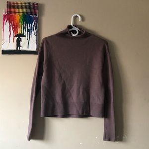 This is a long-sleeve sweater with a slouchy silhouette, drop shoulders and a subtle mock neck. It's made with extra-fine merino wool from Italy.