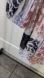 New without tags long sleeve dress with a vibrant patchwork design. Features a blend of blue, brown, and black patterns. Ideal for versatile styling.