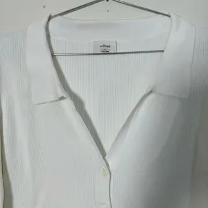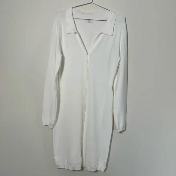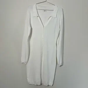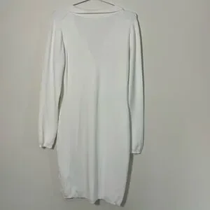 Knit sweater dress with v neck and collar. See photos for small mark near hem.