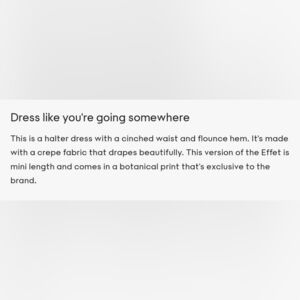 This is a sleeveless mini dress with a cinched waist, a halter neckline and a flounce hem. It's made with a luxe, drapey crepe de chine