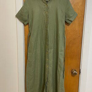 🌿 Wilfred Eleta Linen Maxi Shirt Dress – Bitter Sage, Size XXS