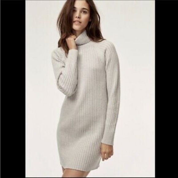 Wilfred Free Aritzia - Turtleneck, thick knit ribbed Longsleeve gray sweater mini dress
