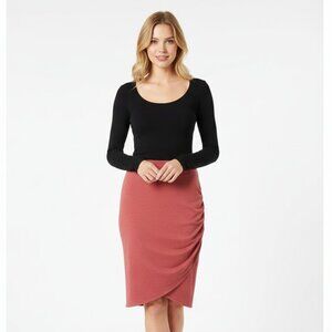 Wilfred Free Aritzia Dark Coral Red Ruched Wrap Midi Skirt Size XXS