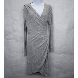 Wilfred Free Aritzia Klum Faux Wrap Dress M Heather Grey Long Sleeve Ruched Midi