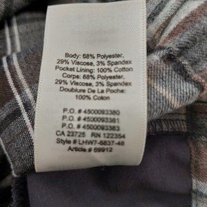 Shell: 68% polyester, 29% viscose, 3% spandex;