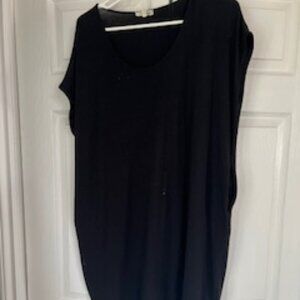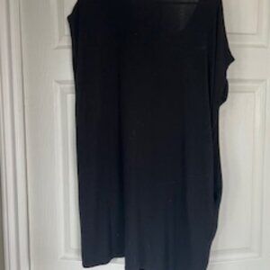 Well-loved, in great shape, lightweight, washable, Rayon/Poly/Spandex knit black dress with cap sleeves.