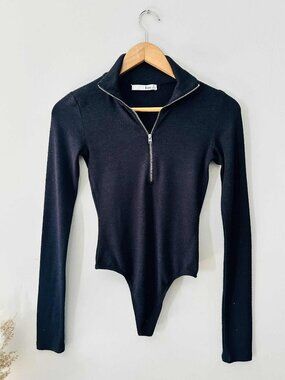 Wilfred Free Black Zip-Front Ribbed Long Sleeve Bodysuit, Size Small