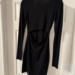 Wilfred Free Cut-Out Knit Long Sleeve Mini Dress – Chic & Edgy (Size S, Black)