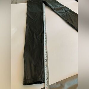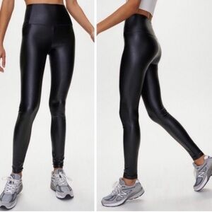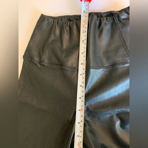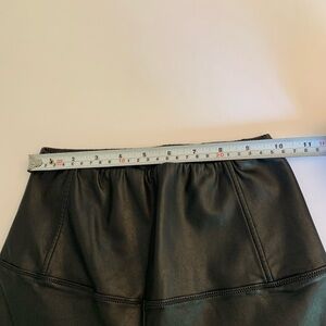 These are high-rise leggings with a wide waistband for a smooth silhouette. They’re made with our Premium Vegan Leather from Japan, crafted for superior shape retention, easy care, and an authentic look and feel. The inside side tag fell off, and the front tag on one side of the thread came out (see photos).