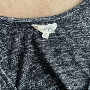This chic bodycon dress by Wilfred features a sleek neckline and a stylish asymmetrical cut. The heathered gray fabric offers a modern look, while the cutout detail adds a trendy touch, making it perfect for a casual night out.