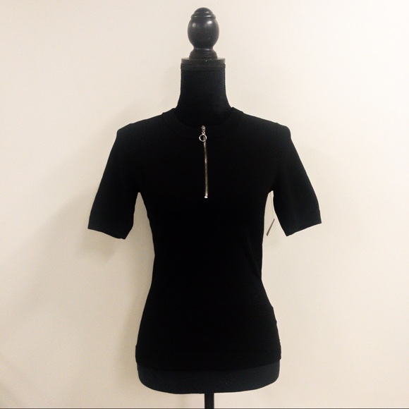 Short sleeve knit top Half Zip Silver detailing Like new