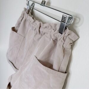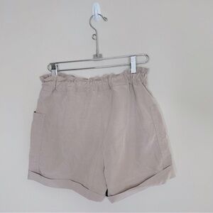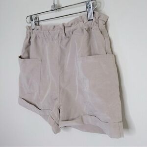 Style: Paper Bag Shorts High Waisted with Elastic Waist, Big Front Pockets, Cuffed Hem