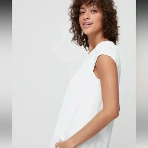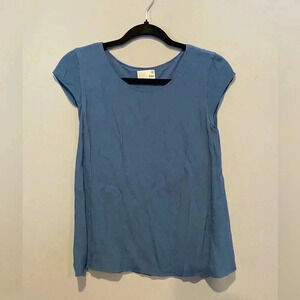 Technically a blouse Wears like a blouse; feels like a tee. This cap-sleeve blouse is made with a drapey crepe fabric that hangs just right and always looks polished. Excellent condition Fits like a small8