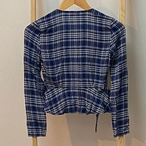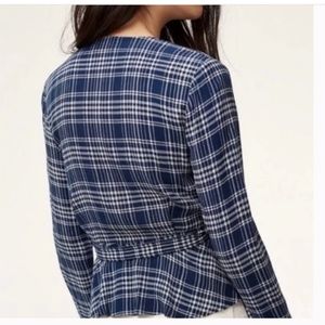 'The Shannon Blouse is perfect for creating a variety of looks, whether you choose to pair it with tailored trousers for a polished office ensemble or tuck it into your favourite denim for a casually chic weekend look. The versatility of this blouse makes it a staple for any fashion-forward wardrobe. The blue plaid pattern adds a refreshing and timeless charm, making it a versatile piece that seamlessly transitions from day to night.'