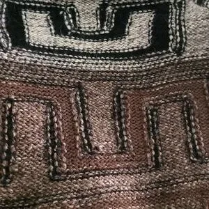 Stay warm and stylish with this women's brown and black patterned sweater. Perfect for any casual outing. 50% wool, so comfortable in any weather. Looks handmade. Measures 35 inches armpit to armpit and 26 inches top of shoulder to hem.