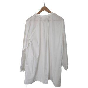 This is a long-sleeve button-up dress with a patch pocket and dropped shoulders. It's made from lightweight 100% cotton poplin with a smooth, crisp feel.