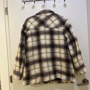 Warm and cozy coat, really nice plaid pattern. Used but in good condition- no pulls, tears, or stains.