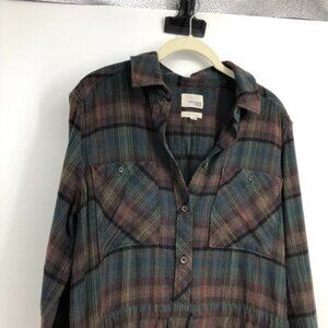 Wilfred Free plaid flannel drawstring dress green brown cotton cozy fall dress