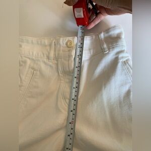 These are high-waisted utility pants with slash hand pockets, side cargo pockets and adjustable tabs at the hem. They're made with cotton twill that has a comfortable amount of stretch.