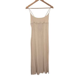 Wilfred Gold Camel Open-Back Dreamweaver Dress Size Large Relux Jersey with Slit