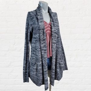 Stylish gray cardigan by Wilfred. Soft knit fabric. Open front design. Perfect for layering.