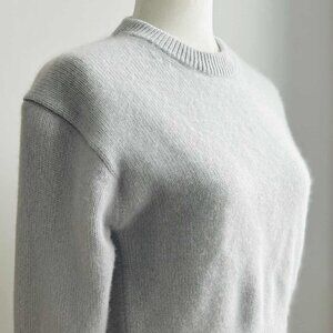 Wilfred’s cashmere knits are known for their quietly luxurious handle, and this pale ice blue crew perfectly reflects that signature. Knit from pure cashmere through the body with cashmere-rich rib trim, it has a fine, even jersey stitch that holds its shape while feeling soft and weightless against the skin. The cropped, ribbed hem brings subtle structure to the silhouette, balancing the gentle halo of the yarn for a refined, minimalist finish.
