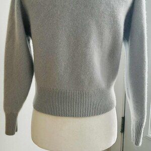 Wilfred Ice Blue Pure Cashmere Crewneck Sweater with Ribbed Hem – US XS