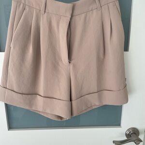 These are high-waisted cuffed shorts with double knife pleats. They're made from Crepette™ —