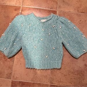 Aritzia LE FOU Wool Alpaca Knit Pearl Embellishments Puff Sleeves