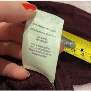 Excellent used condition. Worn twice. No rips, stains or pulls. A lightweight Aritzia staple in a beautiful burgundy wine shade. Asymmetrical detail, longer back than front.