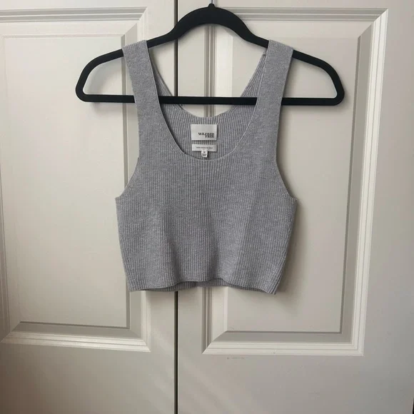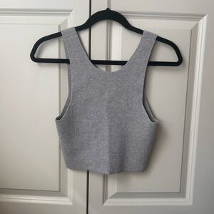 Stylish light gray ribbed tank top. Perfect for casual wear. Soft and comfortable fabric.