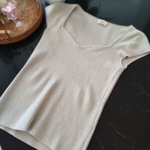 Chic ribbed top by Wilfred. Features a unique neckline and cap sleeves.