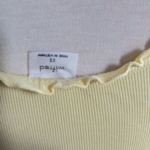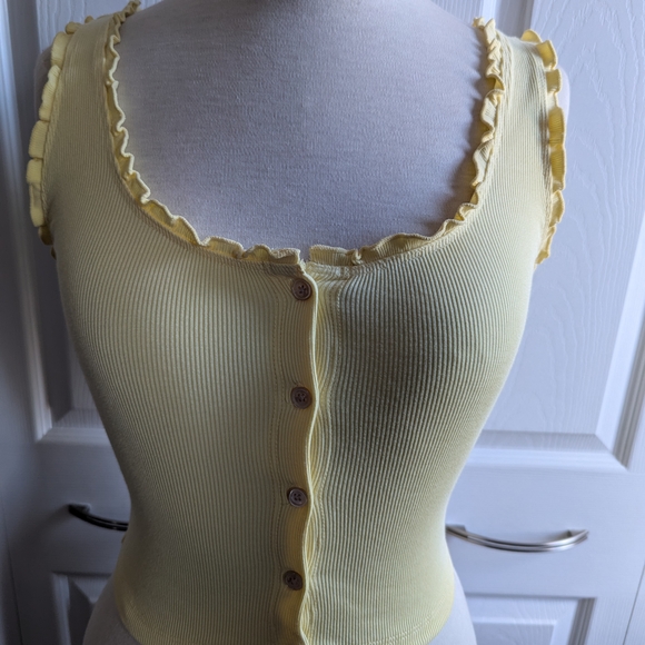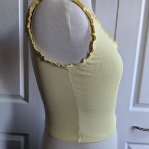 Delicate light yellow tank with ruffled neckline. Perfect for a casual look.