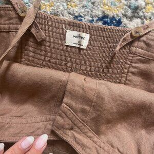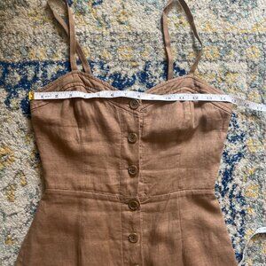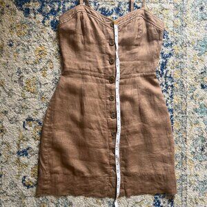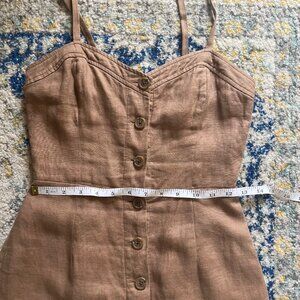 Wilfred linen summer dress in size 0. Skirt is lined and ruching at the back bodice provides some stretch. Purchased a few years ago from Aritzia when the quality of their linen fabric was much nicer, imo. In excellent used condition!