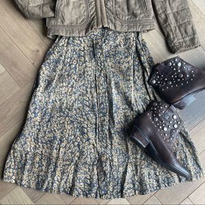 Style: A-line, midi length, button-front