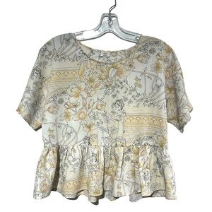 The Macee is a short-sleeve blouse with a peplum silhouette. This version comes in an exclusive hand-drawn print.