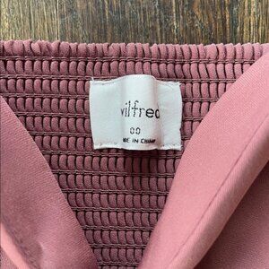 Chic mauve dress with puff sleeves. Elegant design with a side slit. Perfect for stylish outings. Small discoloration on backside.