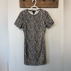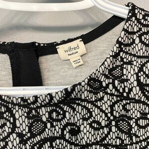Stylish black and white lace dress by Wilfred. In a size Medium, fabric has some give and this is slightly form fitting.