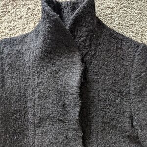 Awesome black coat from Wilfred. It is the cocoon coat in black Mohair. Because of the material (wool) the coat does have some texture and could probably use a depiller to get rid of some of the excess.