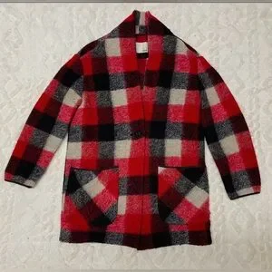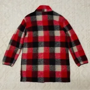 Excellent condition size small checkered Wilfred Off-Duty jacket originally purchased from Aritzia. It has a bold red and black design and is perfect for layering. Freshly dry cleaned and has never been in the washing machine so there is no shrinkage. No pilling, hole, stains, or tears.