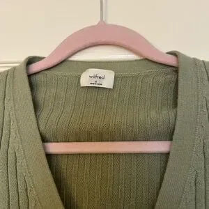 Wilfred Olive Ribbed V-Neck Button-Front Cardigan