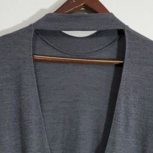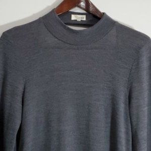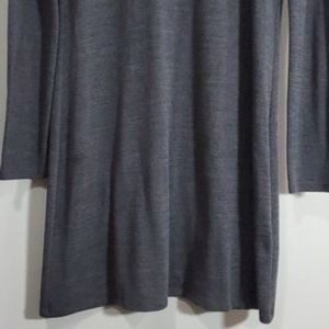 Elegant asymmetrical dress by Wilfred. Features a deep charcoal gray color. Perfect for a chic look for the fall and winter seasons.