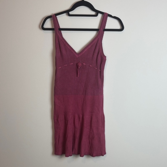 Stylish raspberry knit top with ribbed texture. Ideal for layering. - sz: M - Dyed pink