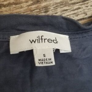 Chic and feminine, this Wilfred short sleeve top features a soft drape and delicate crocheted hem detail. Perfect for adding an elevated touch to your everyday wardrobe while staying comfortable.