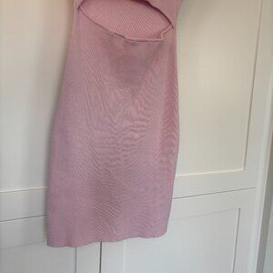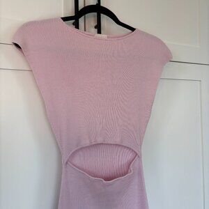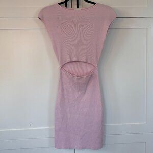 Wilfred Ribbed Baby Pink Cut-out Knit Mini Dress