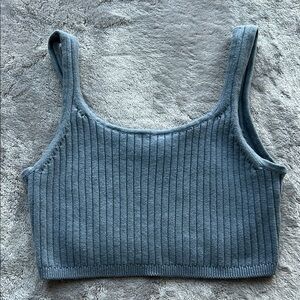 This stylish blue ribbed knit top offers a comfortable and chic look. Perfect for casual outings or layering.